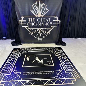 $950.00This bundle package includes a 8x8ft custom floor wrap, 8x8ft custom backdrop and 100 thank you notes. The backdrop and thank you notes will be shipped directly to you in advance. Our staff will install the floor wrap on the day of the event. We can also offer installation services for the backdrop if needed.